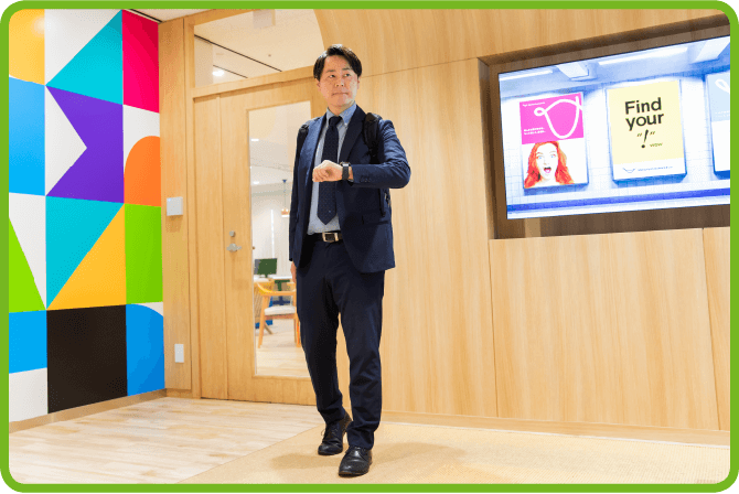 都心エリアの店舗を管轄するスーパーバイザー(SV)を務めています。SVは管轄店舗を統括指導する立場ではありますが、あくまで主役は店舗。SVの仕事はお客様に良いサービスをお届けするために、店舗の従業員がイキイキと働いてもらう環境を作ることです。統括指導というより、後方支援と言ってもいいかもしれません。